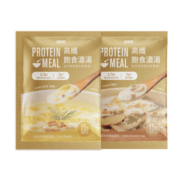Spark Meal 高纖飽食濃湯使用不怕高溫破壞的牛奶酪蛋白及豌豆、大豆蛋白,可直接以熱水沖泡,輕輕攪拌30秒至一分鐘即能享受熱呼呼的營養美味!