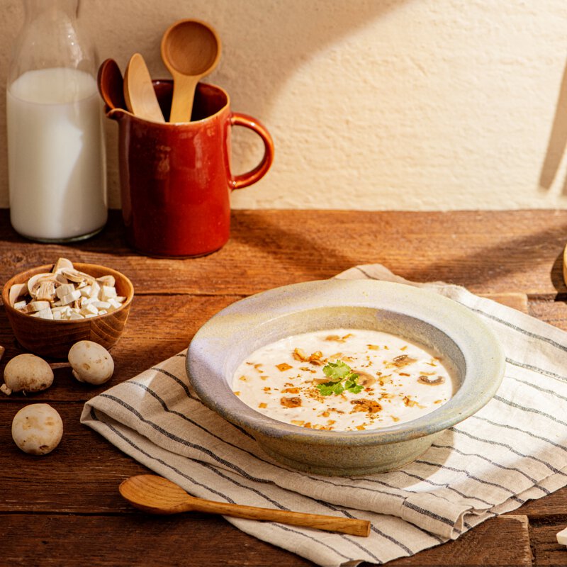 嚴選菇肉飽滿厚實的牛肝菌菇,乾燥研磨成粉後更帶有蕈菇特有的濃郁風味,佐以松露溫潤綿長的香氣及多種義式香料,製成香濃醇厚的鮮美湯底,更添加質地柔軟的洋菇切丁創造多層次口感,口口享受令人陶醉的奢華美味。