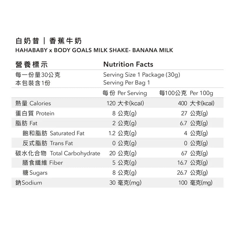 Body Goals【hahababy聯名】 飽飽控卡白奶昔|香蕉牛奶