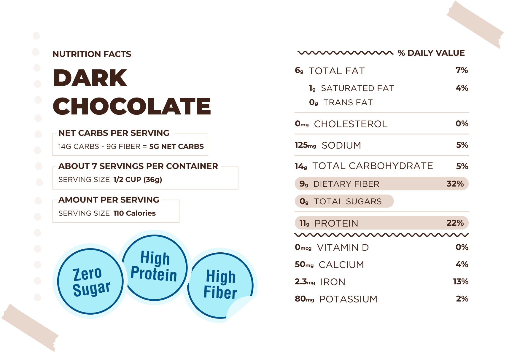 INGREDIENTS :Catalina Flour (Pea Protein, Potato Fiber, Non-GMO Corn Fiber, Chicory Root Fiber, Guar Gum). Tapioca Flour, Sunflower Oil, Cocoa Powder, Baking Powder, Natural Flavors, Sea Salt, Calcium Carbonate, Stevia Extract, Monk Fruit.