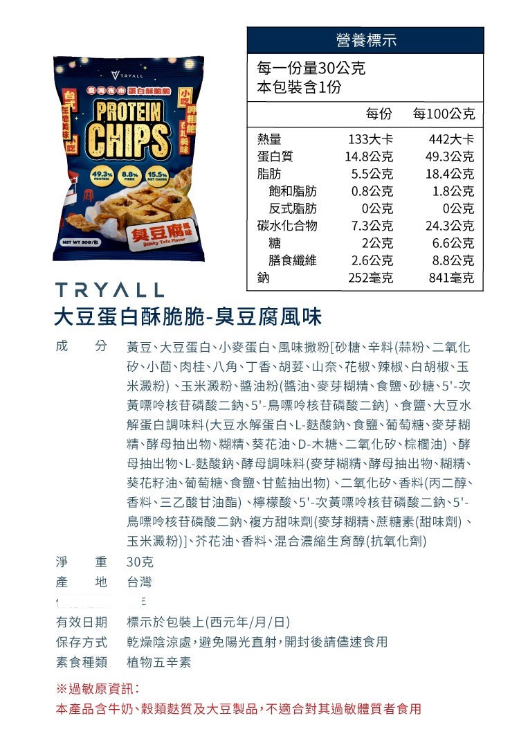 Tryall | 蛋白酥脆脆-臭豆腐風味(30g)-Protein Soy Chips-Stinky Tofu