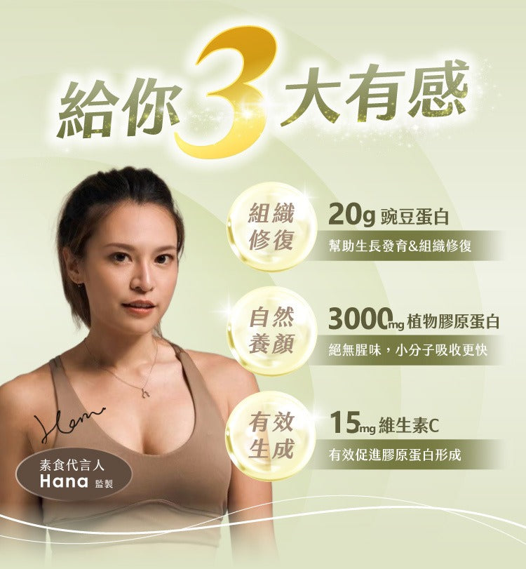 ● 一次補充雙蛋白(20g豌豆蛋白+3,000mg植萃膠原蛋白)
